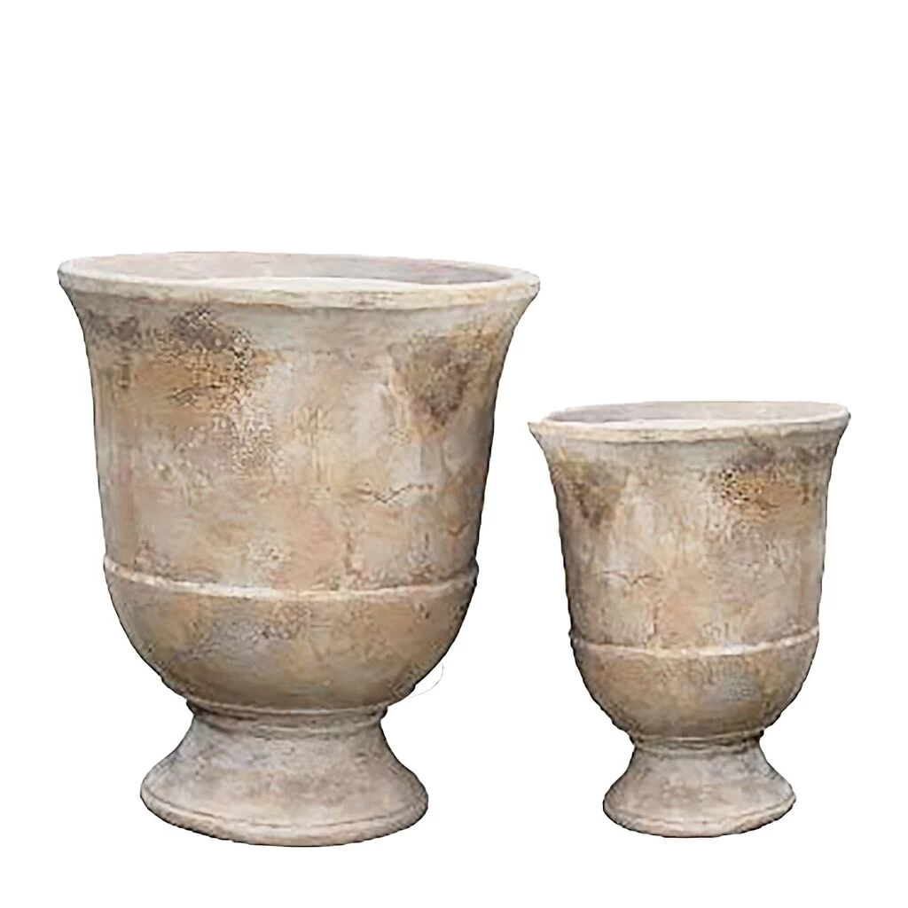 Das 2er Set JAELA, bestehend aus zwei Gartenpokalen mit den Maßen 50x43cm und 71x60cm (HxDm), wird aus Terrakotta handgefertigt und besticht neben der schönen braunen Antik Optik vor allem mit seiner Langlebigkeit. Die stilvollen Pflanzgefäße werden ein Blickfang in Ihrem Garten oder auf Ihrer Terrasse.