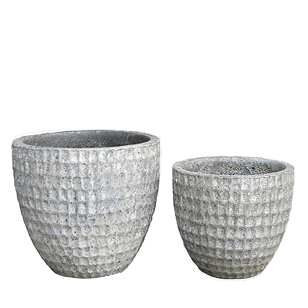Bei dem verwendeten Material des grau-weißen Vasen Sets handelt es sich um ein Ton-Sand-Gemisch, welches bei 1250°C zu Keramik gebrannt wird. Die Keramik ist winterfest und hat eine raue Oberflächenstruktur. Es handelt sich um schwere Ware. Da die Produkte in Handarbeit gefertigt werden, kann es stets zu Abweichungen in Farbe und Oberflächenstruktur kommen.