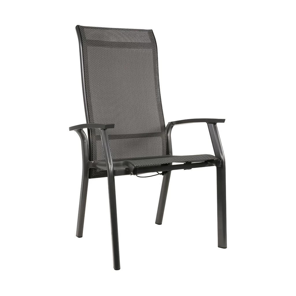 Dieser robuste Gartenstuhl ist unter ständiger Qualitätskontrolle aus Aluminium mit einer Beschichtung gefertigt. Als Sitzfläche wird Textylen genutzt.Die Outdoor-Möbel sind beständig gegenüber Witterung und können ganzjährig im Außenbereich eingesetzt werden. Zur Reinigung sind Wasser und ein Schwamm ausreichend. Von säurehaltigen Reinigungsmittel wird abgeraten. Diese können die Oberfläche schädigen und zu einem Verlust der Wetterbeständigkeit führen.