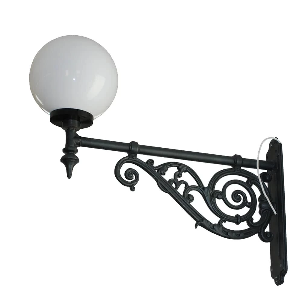 Diese Außenwandlampe aus Gusseisen im antik Design wird nach einer historischen Original Vorlage gefertigt und ist vielfältig für Haus und Hof einsetzbar. Auch in Städten oder an Museen wird Sie Ihre Wirkung nicht verfehlen. Dank einer neuartigen Gusstechnik auf Aluminium-Basis wird Korrosion und Rost verhindert, so dass die Laterne auch den widrigsten Witterungsbedingungen standhalten kann. Alle Gusseisenteile der Lampe sind pulverbeschichtet und können in vielen Farben bestellt werden. Standardmäßig bieten wir die Wandleuchte in schwarz (RAL 9005), grün (RAL 7016) und anthrazit (RAL 6005) an. Auf Anfrage sind alle Farben der RAL Farbpalette möglich (gegen Aufpreis).