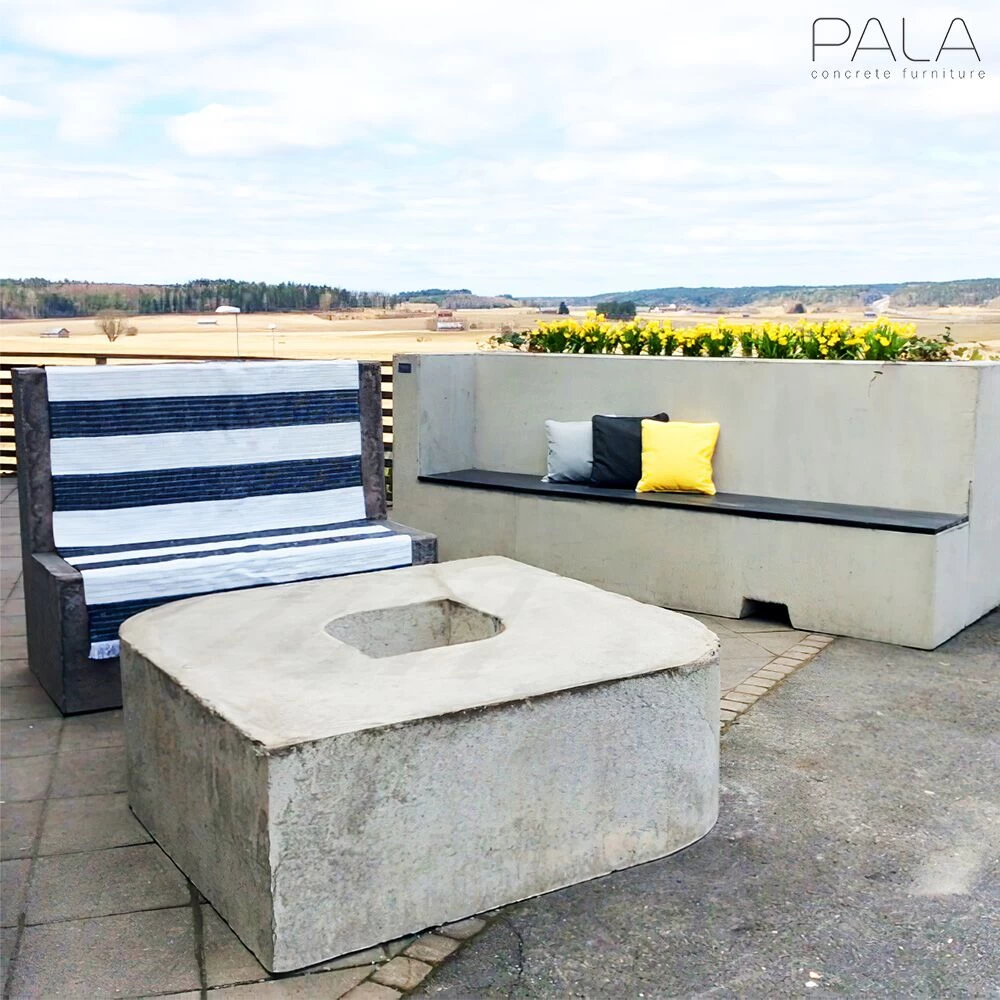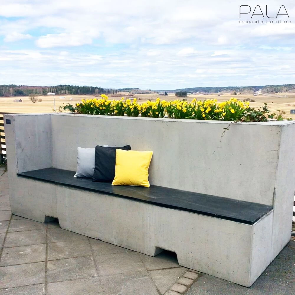 Diese Bank für die Stadtgestaltung wird im Betongussverfahren hergestellt. Die bepflanzbare Rückenlehne macht das Sitzmöbelstück zu einem wahren Blickfang. Wahlweise kann die Betonbank mit einer wetterfesten Sitzfläche aus Lärchenholz geliefert werden. Für das Abladen bei Anlieferung wird ein Kran benötigt.