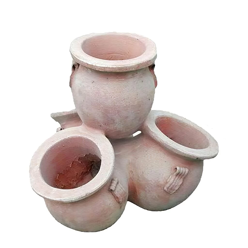 Bei dem verwendeten Material handelt es sich um Terrakotta, ein unglasiertes keramisches Produkt aus gebranntem Ton. Das Pflanzgefäß wird in Handarbeit gefertig und bei einer Temperatur von 900°C -1.000°C gebrannt. Es handelt sich hier um Terrakotta in natürlicher Färbung. Dieses Produkt ist nicht winterfest und muss in der Winterzeit ins Haus geholt werden.