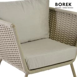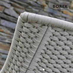 Das Teakholz der Tectona Grandis ist stabil gegenüber UV-Strahlung, Chlor sowie Salzwasser. Im Laufe der Zeit altert das unbehandelte Hartholz. Kleine Risse sind normal und haben keinen Einfluss auf die natürliche Robustheit. Eine regelmäßige Reinigung mit einem Teak Cleaner wird empfohlen. Mittels Nachbehandlung mit dem Borek Teak Protector wird das Holz gesättigt, sodass Nässe und Schmutz nicht eindringen können. Um ergrautes Holz wieder frisch aussehen zu lassen, wird der Borek Teak Sealer empfohlen, welches das natürliche Braun des Teakholzes wieder zum Vorschein bringt. Das Batyline-Gewebe ist weich, wasserdicht und witterungsbeständig.