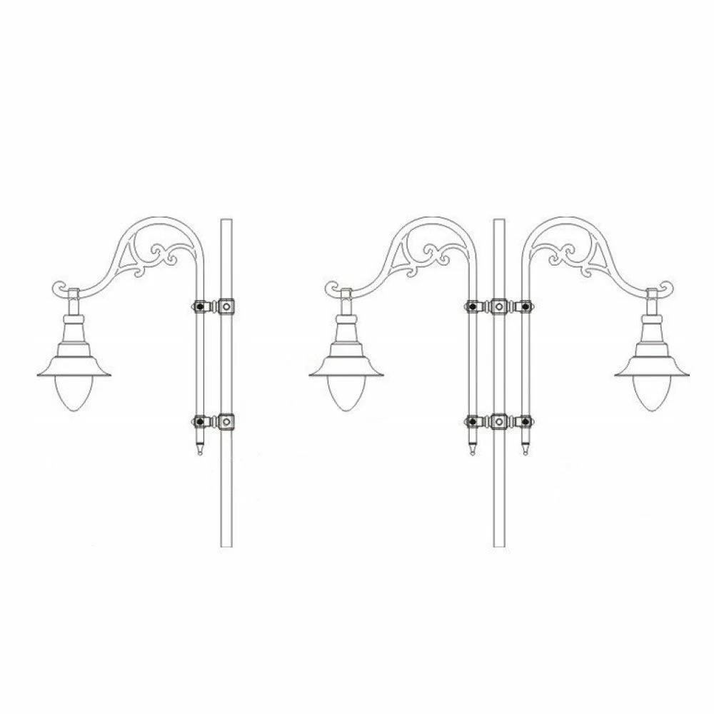Die Straßenlaterne mit Schirmlampe sowie historischen Verzierungen ist eine stilvolle Ergänzung für Städte und Parks. Einige Merkmale, wie Farbe, Größe, Anzahl der Leuchte, etc., sind individualisierbar. Wenden Sie sich hierzu gerne an unseren Kundenservice und wir erstellen Ihnen ein Angebot. Die Lieferung der Beleuchtung erfolgt zerlegt.