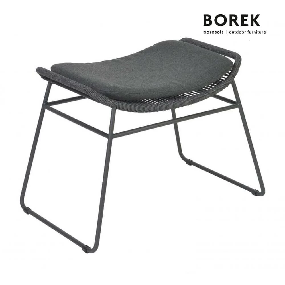 Dieser Gartenhocker aus dem Hause Borek überzeugt mit einem modernen Design, das an verträumte Stunden im Spätsommer denken lässt. Das feuerverzinkte Stahlgestell ist mit einer Bespannung aus Ardenza-Seil überzogen. Ardenza ist reißfest, UV-beständig, resistent für Temperaturen zwischen 40 bis 80 Grad und extrem widerstandsfähig gegenüber Witterung.