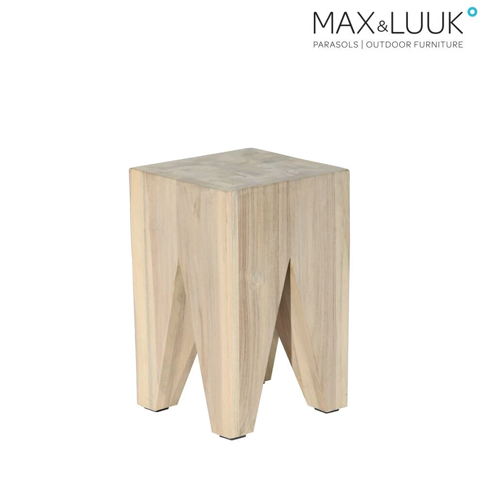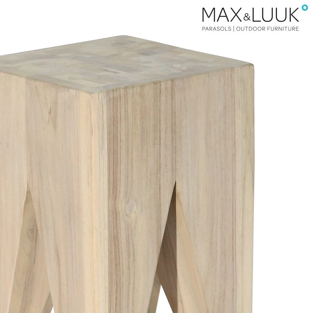 Teakholz verleiht dem Hocker seinen einzigartigen Charme. Im Freien ändert das Holz im Laufe der Zeit seinen Farbton und wird silbergrau, da die Pigmente in der Oberflächenschicht des Holzes verblassen. Jedes Stück Teakholz ist ein Naturprodukt und hat eine individuelle Struktur. Durch Wettereinflüsse, starke Temperaturschwankungen oder eine Änderung des Feuchtigkeitgehaltes im Holz, können Risse auftreten. Dieses „Schwinden“ ist ein natürlicher Vorgang, welcher keinerlei Einflüsse auf die Qualität des Gartenmöbels hat. Drei bis vier Mal im Jahr sollte das Holzmöbel mit einem Teak Cleaner von Schmutz befreit werden. Die Verwendung eines Hochdruckreinigers wird nicht empfohlen. Mit einem Teak Protector kann das Holz vor Flecken, zum Beispiel von Speisen oder Getränken, geschützt werden. Im Winter können Teakholzmöbel an einem trockenen Ort gelagert werden.