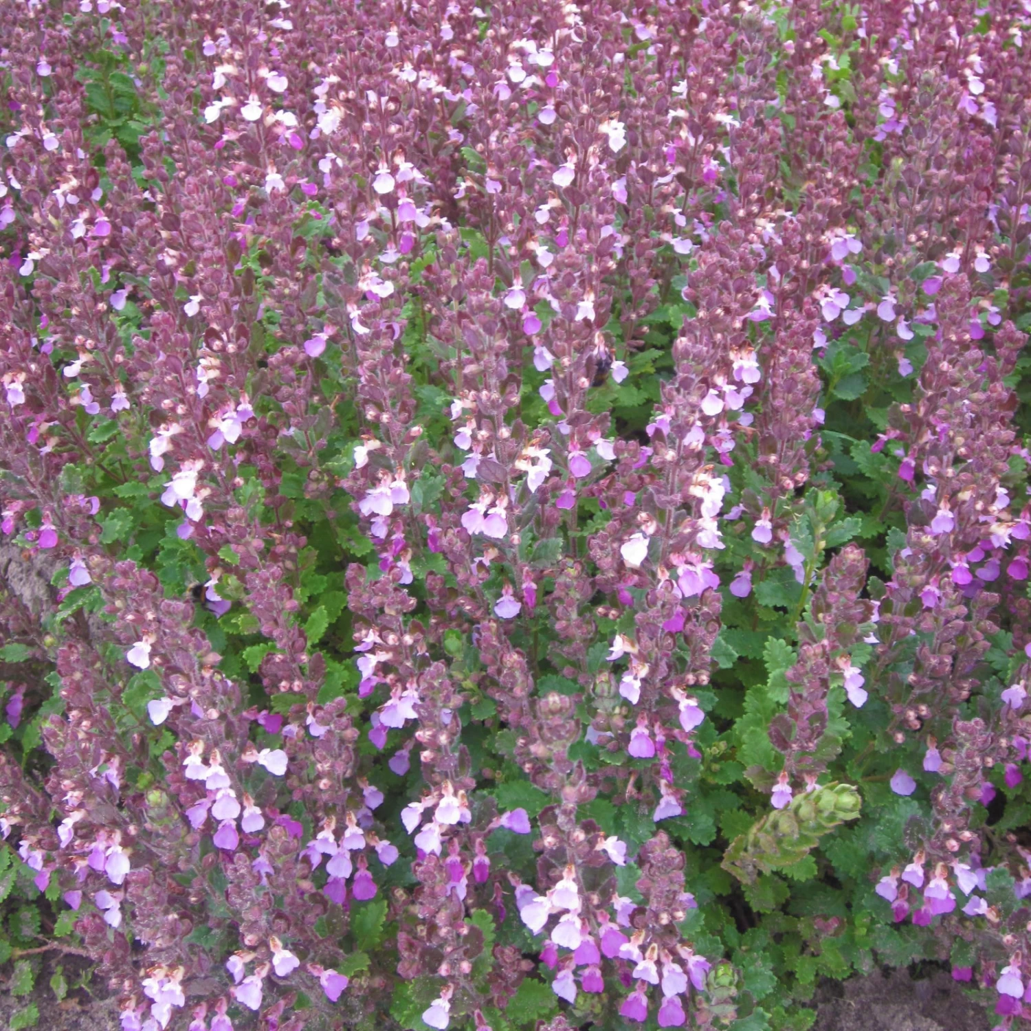 Der meist wintergrüne Edel-Gamander, Teucrium chamaedrys ist eine sehr dekorative Staude mit dichtem, flachem Wuchs. Sie wird 30 bis 40 cm hoch. Die duftenden, 2 – 5 cm langen, an Eichenlaub erinnernden, derben, behaarten Blätter des Echten Gamanders, wie er auch genannt wird, sind dunkelgrün und manchmal rötlich überhaucht.