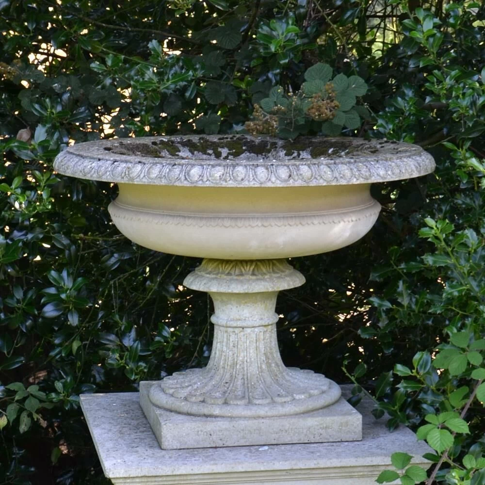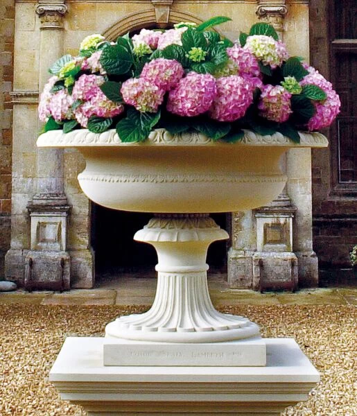 Englische Steinamphoren für den Garten erfreuen sich großer Beliebtheit, indem sie, ob als Wasserbecken in Kombination mit einem Brunnen, als Dekoelement oder als reine Blumenvase ein Highlight im Innen- und Außenbereich darstellen. Die romantische Optik wird durch die traditionelle Herstellung untermalt. Diese erfolgt im Steinguss-Verfahren, in welchem ein Abdruck aus der Original-Vorlage von 1812 erstellt und mit hochwertigen Materialien befüllt wird. Als Werkstoffe dienen unter Anderem Zement, Sand sowie Kalkstein. In liebevoller Handarbeit werden einzigartige Merkmale modelliert und machen die Gartenamphore zu einem historischen Unikat im englischen Stil. Verschiedene Farbvarianten heben die individuellen Charakterzüge hervor. Das witterungsbeständige und frostsichere Material macht das Steingussgefäß zu einem optimalen, langlebigen Begleiter im Gartenbereich. Diese und andere romantische Gartenvasen können Sie jetzt einfach und bequem online bestellen – auf GARTENTRAUM.