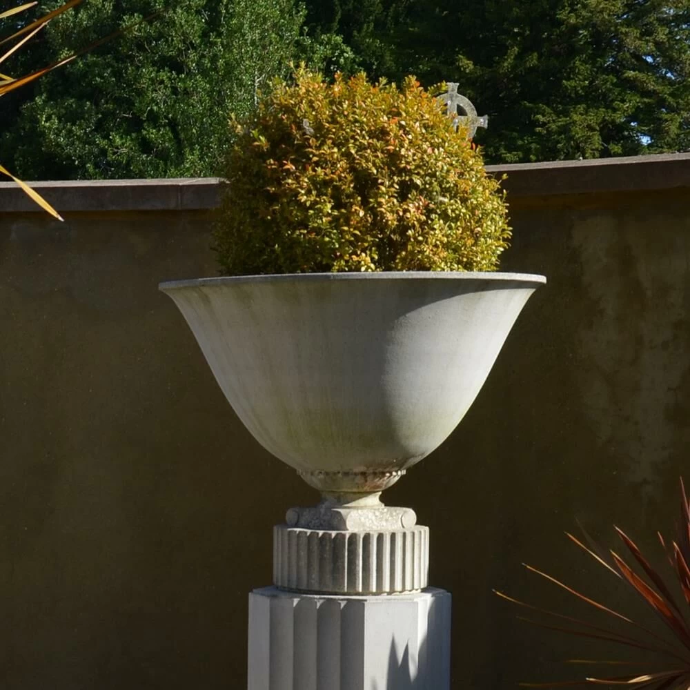 Dieser schöne Blumentopf aus Steinguss ist ein moderner Klassiker für Drinnen und Draußen. Die bewährte Form einer griechischen Amphore haben unsere Bildhauer mit modernen, architektonischen Linien kombiniert und so ein bewährtes Design wieder aufleben lassen. Durch das ansprechende Design eignet sich dieser elegante Pflanztopf aus echtem englischem Steinguss sowohl für die zeitgenössische als auch für die klassische Gartendekoration. Charakteristisch ist die geschwungene Form, die uns an einen griechischen Kelch erinnert und der reichlich verzierte Sockel. Unser Tipp: Pflanzen werden diese Gartenamphore lieben, die Steinguss-Vase kann direkt bepflanzt werden. Nicht nur Blumen kommen in dem Pflanzgefäß toll zur Geltung, auch Kräuter, Rankpflanzen, kleine Stauden oder Obst- und Gemüse kann problemlos eingepflanzt werden.