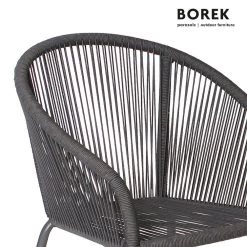 Dieser wetterfeste Gartenstuhl vom Gartenmöbel-Hersteller Borek wird aus Teakholz und Ardenza-Seil gefertigt. Das Gestell aus Teakholz verleiht dem Gartenstuhl ein hohes Maß ans Stabilität und seine schöne honigbraune Farbe. Sitzfläche und Rückenlehne sind mit beigem Ardenza-Seil bespannt, einem synthetischen Material, das sehr natürlich wirkt, farbecht & UV-beständig und extrem witterungsbeständig ist. Für das Gestell des Lounge-Stuhls verwendet Borek ausschließlich sorgsam gewähltes Teakholz, das in Einklang mit der Umweltpolitik des Unternehmens gefällt und verarbeitet wurde. Der Name Teakholz kommt von seiner wissenschaftlichen Bezeichnung „Tectona Grandis“. Die bekannte Stabilität des Holzes liegt am hohen Ölgehalt. Weil das Holz kaum Feuchtigkeit aufnimmt, verzieht es sich nicht und behält auch unter dem Einfluss von UV-Strahlung, Chlor und Meereswasser seine beeindruckende Stabilität. Eventuell auftretende kleine Risse sind unbedenklich und völlig normal für arbeitendes Holz. Aus aus mehreren Lounge-Stühlen und einem niedrigen Gartentisch aus unserem Shop können Sie sich Ihre eigene Sitzgruppe im Freien zusammenstellen.