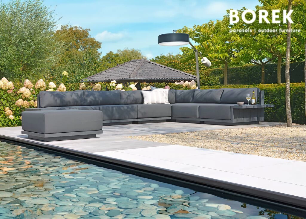 Diese formschöne Sitzinsel stammt aus der neuen eleganten Kollektion MURICA der Qualitätsmarke BorekDieser Hersteller aus den Niederlanden steht für stilvolle Möbelstücke in ansprechenden Designs, die aus hochwertig verarbeiteten Materialien gefertigt wurden. Passend zu den frei erweiterbaren Sofamodulen dieser Kollektion, kann auch diese bequeme Sitzgelegenheit auf Ihrer Terrasse oder in Ihrem Garten aufgestellt werden. Die Aluminiumelemente sind, wie bei allen Möbeln dieser Kollektion, nach hohen Qualitätsstandards hergestellt und in einem aufwendigen Prozess nachbearbeitet, versiegelt und schließlich gehärtet worden. Das gradlinige Design, die edlen schlichten Farben und die extrem bequemen Polster aus strapazierfähigem Sunbrella®-Stoff machen das Loungegefühl perfekt. Viele weitere schöne Gartendekoration und Erweiterungen wie beruhigende Windspiele oder ausgefallene Wasserspeier finden Sie in unserem Onlineshop.