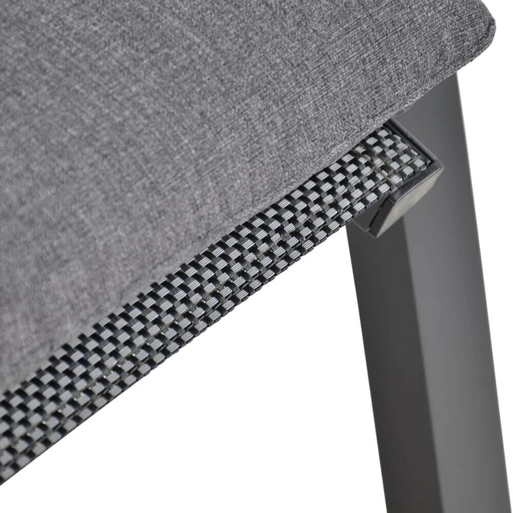 Dieser robuste Gartenhocker wird unter ständiger Qualitätskontrolle aus Aluminium gegossen und erhält eine graue Pulverbeschichtung. Das Sitzkissen ist mit einem strapazierfähigen Kunststoff-Bezug versehen. Der 220 g/m^2 Olefin-Bezug ist in Grau hergestellt. Die Sitzauflage ist mit einem Baumwollinlay ausgestattet. Die Outdoor-Möbelstücke sind wetterfest. Zur Reinigung sind Wasser und ein Schwamm ausreichend. Von säurehaltigen Reinigungsmittel wird abgeraten. Diese können die Oberfläche schädigen und zu einem Verlust der Wetterbeständigkeit führen.
