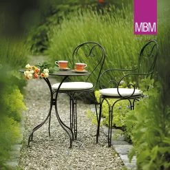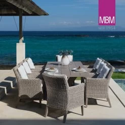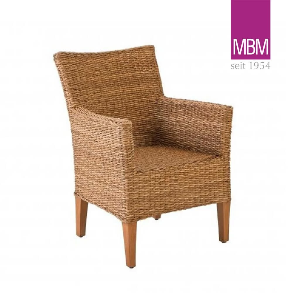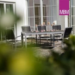 Dieser robuste und gemütliche Gartensessel aus dem Hause MBM ist ein Fest für die Sinne. Aus wetterfesten Materialien gefertigt, ist der Sessel hervorragend für Garten und Terrasse geeignet. Ein Gestell aus rostbeständigem Aluminium sorgt für Stabilität und Leichtigkeit. Die Stuhlbeine sind aus Resysta gefertigt, einem besonders robusten Material, das auch als das bessere Holz bezeichnet wird und in Haptik und Aussehen an dunkles Tropenholz denken lasst. Die Rückenlehne, die Sitzfläche und die Armlehnen sind aus dem ebenfalls eigens von MBM entwickelten Mirotex-Geflecht gefertigt, das wie natürliches Rattan wirkt und dabei absolut witterungsbeständig ist. Die hellbraunen Tabak- und Cognac-Farbtöne harmonieren perfekt mit der natürlichen Umgebung des Gartens.