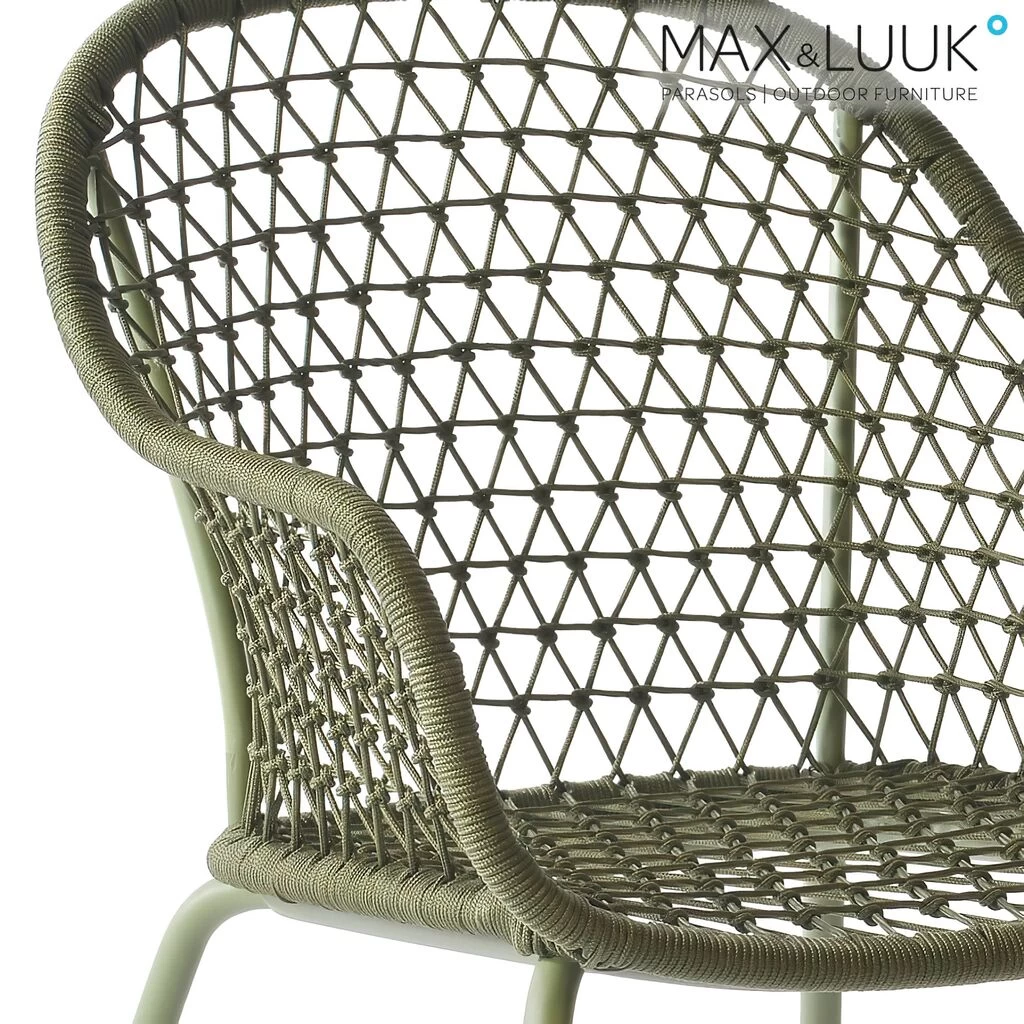 Bei dem hier verwendeten Outdoor-Seil handelt es sich um ein innovatives und widerstandsfähiges Material für die Herstellung von Gartenmöbeln. Es überzeugt mit einem modernen Aussehen und einer weichen, komfortablen Haptik. Durch die Verwendung verschiedener Flechttechniken entstehen immer neue Designs die in Kombination mit verzinktem Stahl oder Aluminium einzigartig sind. Das Seil wird aus thermoplastischer Polypropylen Faser gefertigt und ist Temperatur-, UV- und Schimmelbeständig. Außerdem ist das Material schmutzabweisend, farbecht, PVC-frei, waschbar und pflegeleicht. Für die Reining empfehlen wir Gewebereiniger. Von der Verwendung eines Hochdruckreinigers wird abgeraten.