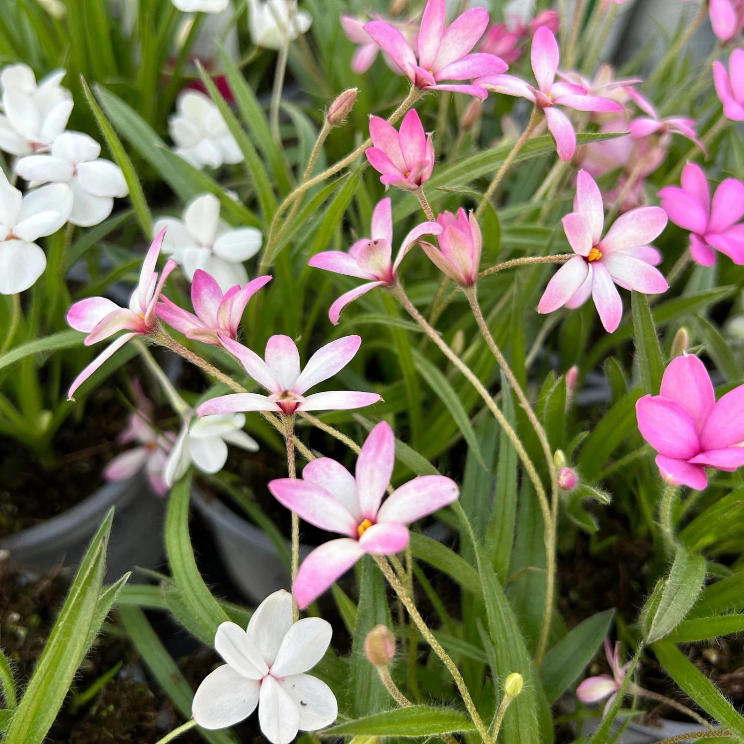 Der Grasstern Rhodohypoxis wird Sie den ganzen Sommer hinweg mit seinen sternenförmigen, farbenfrohen Blüten und einem polsterartigen, dichten Wuchs begeistern. Ursprünglich stammt Rhodohypoxsis aus Südafrika und ist nur bedingt winterhart. Zum Überwintern braucht der Grasstern einen guten Winterschutz gegen Frost und Winternässe. Im Sommer fühlt sich Rhodohypoxis an feuchten, halbschattigen bis sonnigen Standorten wohl. In seiner Heimat gedeiht die Pflanze in der Nähe von Hochmooren oder Gewässern. Suchen Sie für Ihren Grasstern einen Platz im Halbschatten, denn Rhodohypoxis mag es hell und ohne zu starke Sonneneinstrahlung. Denken Sie daran, die Pflanzen während der Blütezeit im Frühling und Sommer mit Wasser zu versorgen, auch regelmäßige Düngemittelgaben sind empfehlenswert. Am besten eignet sich Rhodohypoxis als Bodendecker, zur Grabpflege und zur Begrünung von Terrassen oder Balkonen.