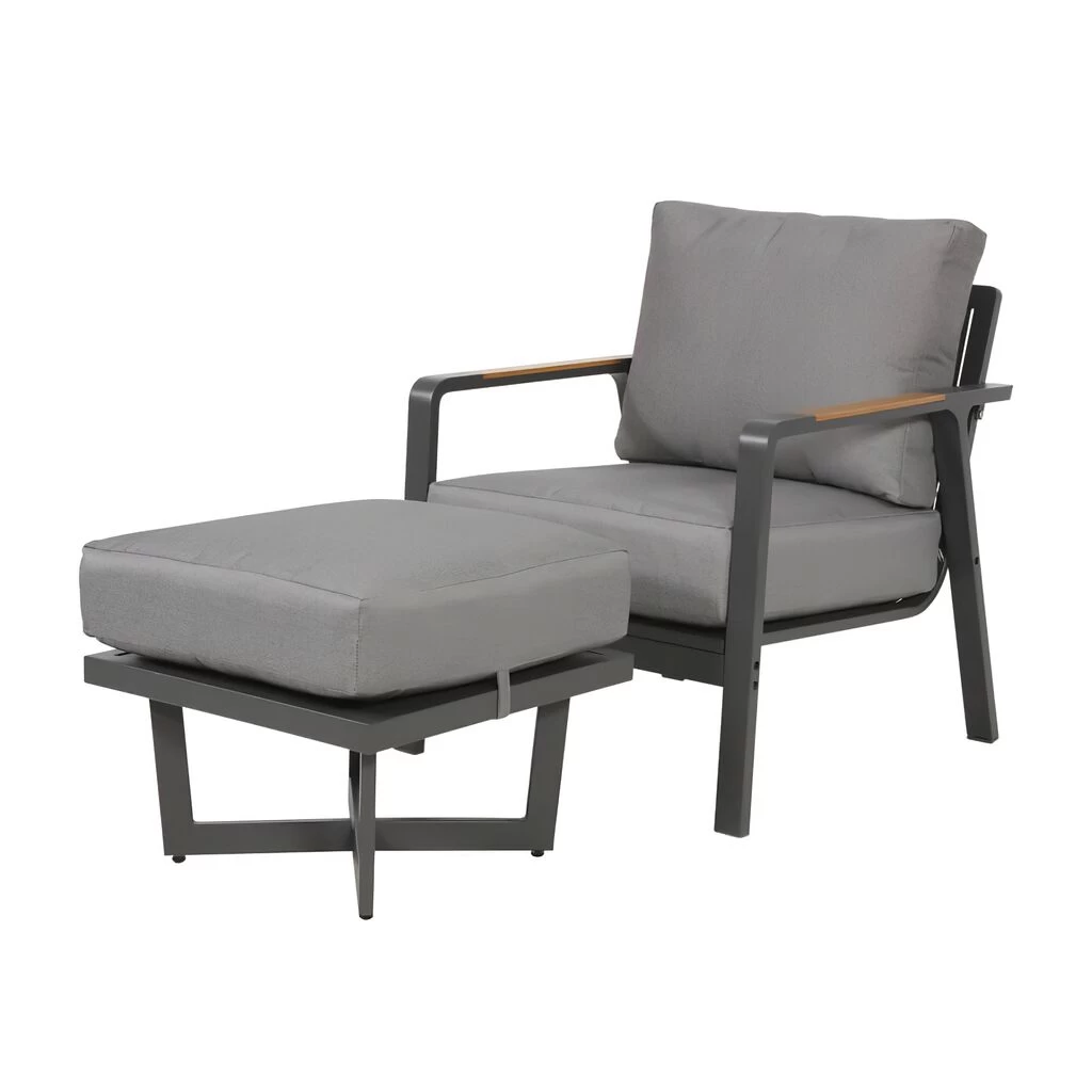 Dieser robuste Gartenstuhl wird unter ständiger Qualitätskontrolle aus Aluminium gegossen und erhält eine graue Beschichtung. Das Outdoor-Möbelstück ist robust und wetterfest. Die Sitzhöhe liegt bei 29 cm (ohne Auflagen). Die 13 cm dicken Olefin-Auflagen sorgen für einen angenehmen Sitzkomfort. Der Stoff hat eine Dichte von 245 gr/m^2 (510D). Das Inlay wird aus einem Baumwoll-Schaumstoff-Gemisch gebildet.Die Kissen haben auf der Rückseite eine Anti-Rutsch-Beschichtung. Zur Reinigung sind Wasser und ein Schwamm ausreichend. Von säurehaltigen Reinigungsmittel wird abgeraten. Diese können die Oberfläche schädigen und zu einem Verlust der Wetterbeständigkeit führen.
