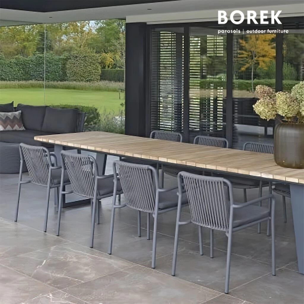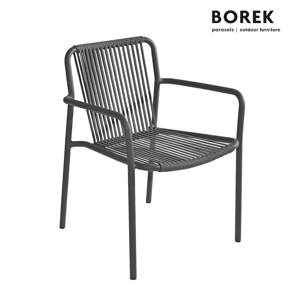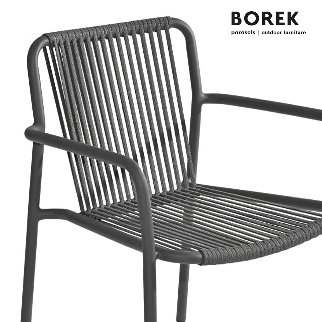 Die Gartenmöbel des Herstellers Borek zeichnen sich durch eine dauerhafte Stabilität und ein modernes Design aus. Eine hochwertige Aluminiumlegierung, die bei 180 Grad pulverbeschichtet wurde, bildet zumeist das Gestell der Möbel. Hinzu kommen hochwertige Materialien für die Bespannung. Der Stapelstuhl ist frost- und hitzbeständig sowie pflegeleicht. Neben Gartenstühlen bietet der Hersteller auch Loungemöbel, Gartenliegen und Sonnenschirme, die Sie ebenfalls in unserem Shop online bestellen können. Das Ardenza-Seil kann mit dem Borek Fabric Cleaner gereinigt und mit dem Borek Fabric Protector geschützt werden.