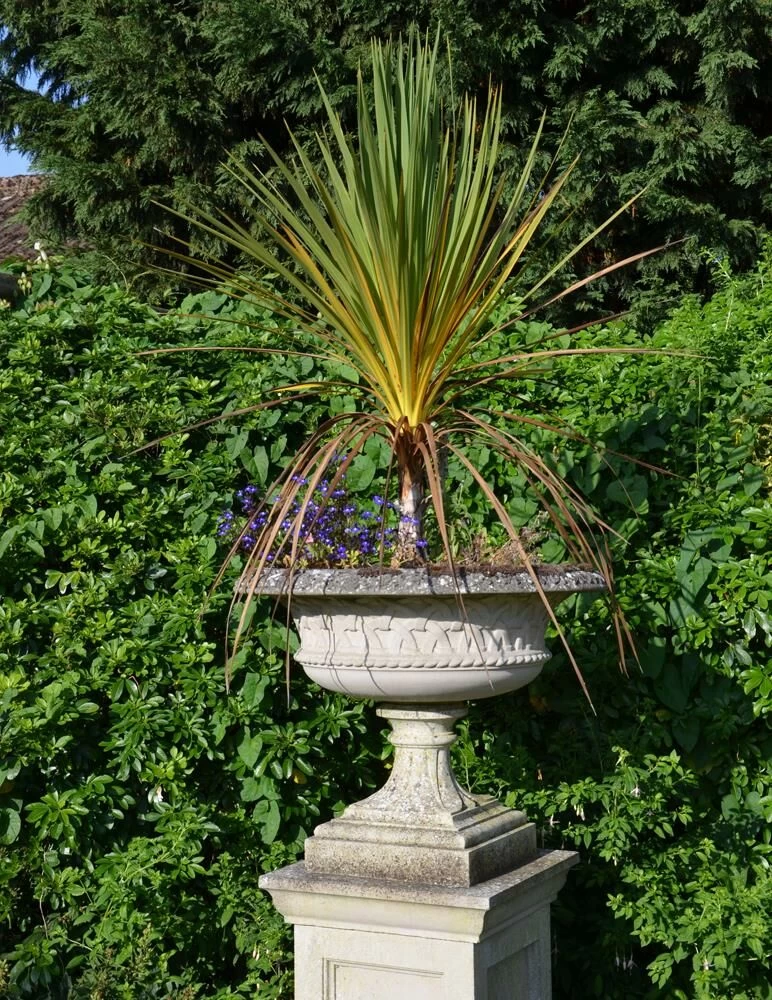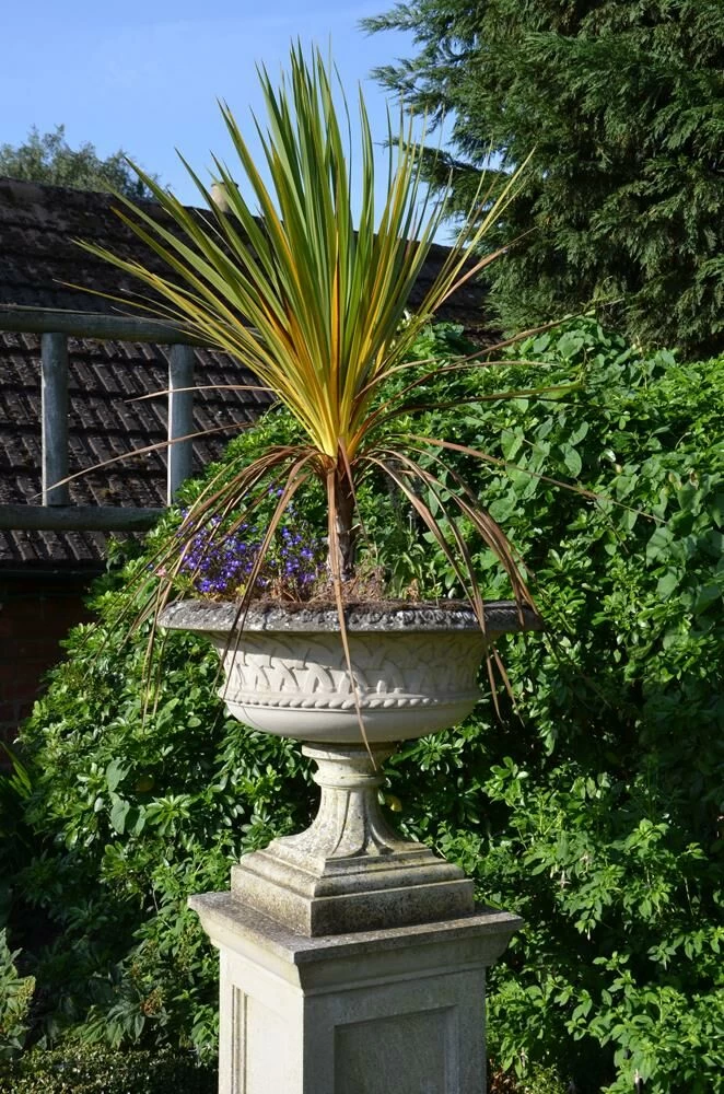 Brickhill Manor ist eine imposante historische Gartenamphore aus Stein, welche auch großen Pflanzen ein geräumiges Zuhause gibt. Der runde massive Korpus wird von einem kunstvoll verarbeiteten Schaft getragen, welcher auf einem quadratischen Sockel steht. Die Blumenvase wird durch ein geripptes Muster verziert, welches nach unten von einem Kordelband abgelöst wird. Der Gefäßrand des Steintroges ragt dekorativ in die Umgebung. Aufgrund der Form eignet sich das Gartengefäß nicht nur als Pflanzvase, auch als Vogelbad und Wasserbecken in Kombination mit einem Brunnen oder frei stehend auf einer Grün- oder Kiesfläche wirkt das Dekogefäß als toller Blickfang. Brickhill Manor bildet somit ein ausdrucksstarkes Dekorationsmittel für jede Umgebung.