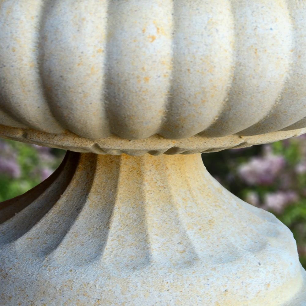 Ausgehend von Italien wurde der Stil der Barockzeit in die Welt hinaus getragen. Die markante schwungvolle Verarbeitung und Ausdrucksstärke dieser vergangenen Epoche spiegelt sich in dieser Gartenamphore wider. Die frühzeitig genutzten Lichteffekte geben dem Blütenkelch eine besondere Note. Die Herstellung erfolgt nach einer barocken französischen Vorlage des 18. Jh. In sorgfältiger Handarbeit werden die typischen Eigenschaften modelliert und damit zu einer individuellen Gartenamphore vereint. Die aus der Original-Vorlage angefertigten Gussformen werden mit hochwertigem Elbsandsteinguss im traditionellen Sandsteinguss-Verfahren befüllt. Dieser ist sowohl frost- als auch witterungsbeständig. Dies führt zu einer nahezu unbegrenzten Dekorationsfreiheit des Besitzers. Egal ob im Sommer auf der Wiese stehend oder im tristen Herbstwetter blühend, dieses Pflanzgefäß ist sorgt für ein leuchtendes Ambiente. Ein Überzug aus antik wirkender Patina verleiht dem barocken Herkunftsstil eine zusätzliche Optik. Diese Gartenvase aus Stein kann exklusiv unter GARTENTRAUM bestellt werden, inklusive Anlieferungsservice.