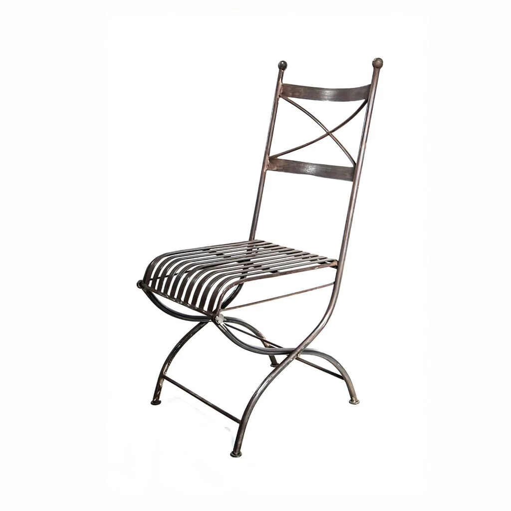 Dieser klappbare Gartenstuhl im Antik Look wird aus hochwertigem Eisen gefertigt und ist damit ein wetterfester und stabiler Begleiter für Ihre Sitzecke im Garten. Die Herstellung erfolgt in einer traditionsreichen Kunstschmiede in Handarbeit unter ausschließlicher Verwendung hochwertiger Materialien. Der farblichen Gestaltung sind innerhalb der RAL Farbpalette keine Grenzen gesetzt. In unserem großen Sortiment finden Sie ebenso stilvolle Gartentische aus Schmiedeeisen, gerne erstellen wir Ihnen ein unverbindliches Angebot für ein schönes Gartenmöbel Komplettset.