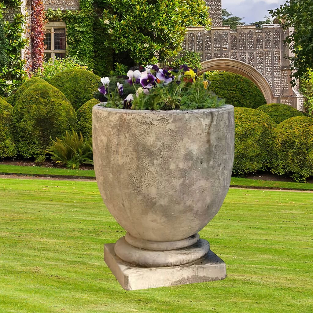 Dieser klassische Blumenkübel wird aus Steinguss in verschiedenen Farbvariationen hergestellt. Das Pflanzgefäß ist beständig gegenüber Frost, Nässe sowie Hitze und ist mit einem kleinen Ablaufloch ausgestattet. Aufgrund der robusten Eigenschaften ist der Pflanztopf das optimale Dekorationselement für den Garten.
