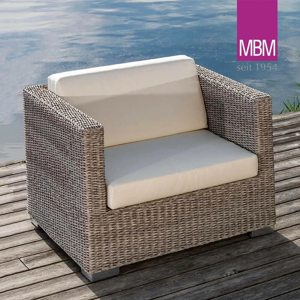 Möbel aus Resysta sehen aus wie Holz und fühlen sich an wie Holz. Das Versprechen von MBM lautet: Für die Herstellung dieser Möbelstücke muss kein einziger Baum gefällt werden. Das Material wurde bereits mit verschiedenen Preisen ausgezeichnet, es ist witterungsbeständig, farbecht, pflegeleicht und sehr langlebig. Gartenmöbel aus diesem Material trotzen Feuchtigkeit, sodass die Oberfläche dauerhaft hält, nicht nachgeschliffen oder neu gestrichen werden muss. Außerdem ist Resysta recycelbar, kann also nach der Verwendung zerkleinert und erneut verwendet werden, wodurch ein unendlicher Kreislauf entsteht. Zu 60 Prozent besteht das Material aus Reishülsen, welche Reststoffe der Lebensmittelindustrie sind. Mirotex Twist ist eine ausgezeichnete Alternative zu Rattan. Das Kunststoffgeflecht überzeugt durch seine natürliche Optik und ist eine hochelastische Faser, die in Handarbeit nach einem traditionellen Flechtverfahren um ein Aluminiumgestell geflochten wird. Sie ist UV-beständig und wetterfest.