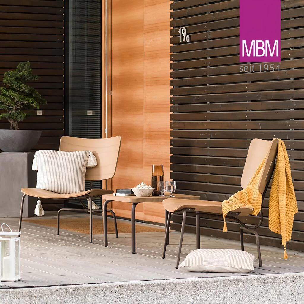 Möbel aus Resysta sehen aus wie Holz und fühlen sich an wie Holz. Das Versprechen von MBM lautet: Für die Herstellung dieser Möbelstücke muss kein einziger Baum gefällt werden. Das Material wurde bereits mit verschiedenen Preisen ausgezeichnet, es ist witterungsbeständig, farbecht, pflegeleicht und sehr langlebig. Gartenmöbel aus diesem Material trotzen Feuchtigkeit, sodass die Oberfläche dauerhaft hält, nicht nachgeschliffen oder neu gestrichen werden muss. Außerdem ist Resysta recycelbar, kann also nach der Verwendung zerkleinert und erneut verwendet werden, wodurch ein unendlicher Kreislauf entsteht. Zu 60 Prozent besteht das Material aus Reishülsen, welche Reststoffe der Lebensmittelindustrie sind. Der deutsche Gartenmöbelhersteller MBM hat erkannt, dass viele Rohstoffe immer knapper werden und möchte dem entgegenwirken. In Kombination mit Materialien wie Schmiedeeisen oder Stahlrohr entstehen Möbel aus hochwertigem Material, die eine zeitlose Eleganz ausstrahlen und einfach etwas ganz besonderes sind.