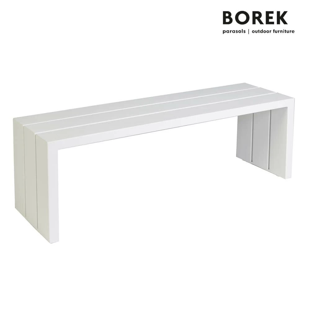 Die niederländische Marke Borek steht für hochwertige Möbel für den Outdoorbereich und Garten. Wie bei allen Produkten wurden auch bei dieser Bank der Kollektion SAMOS nur Materialien mit hoher Qualität verarbeitet. Die Bank besteht aus Aluminiumelementen die, aus Schutz vor Korrosion, mit einem Speziallack behandelt wurden. Das elegante Design und die helle Farbe dieses Sitzelements bilden einen schönen optischen Kontrast zum Grün des Gartens. Auf unserer Seite finden sich neben diesem Stück auch andere schöne Erweiterungen für den Außenbereich Ihres Hauses sowie Gartendekorationen.