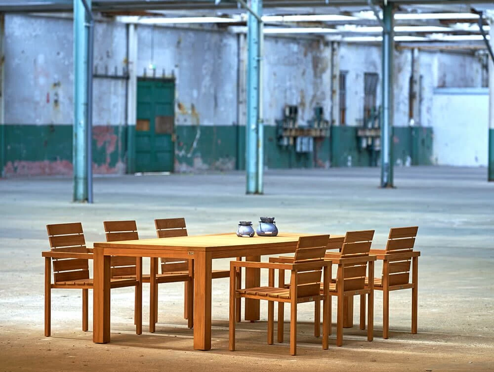 Bei den Gartenmöbeln der Imperial Teak Kollektion handelt es sich um sehr hochwertig produzierte Gartenstühle, Tische und Bänke. Für die Möbel wird ausschließlich Teakholz aus nachhaltig bewirtschafteten Plantagen und von zertifizierten Holzlieferanten verwendet. Die Möbel sind hochwertig im Detail verarbeitet. Alle Verbindungsteile, Scharniere und Holzteile sind passgenau mit höchstem handwerklichen Können gefertigt. Langlebigkeit, Design und Funktionalität stehen im Vordergrund der Produktion und garantieren Ihnen eine lang anhaltende Freude mit diesen hochwertigen zeitlosen Möbelstücken.