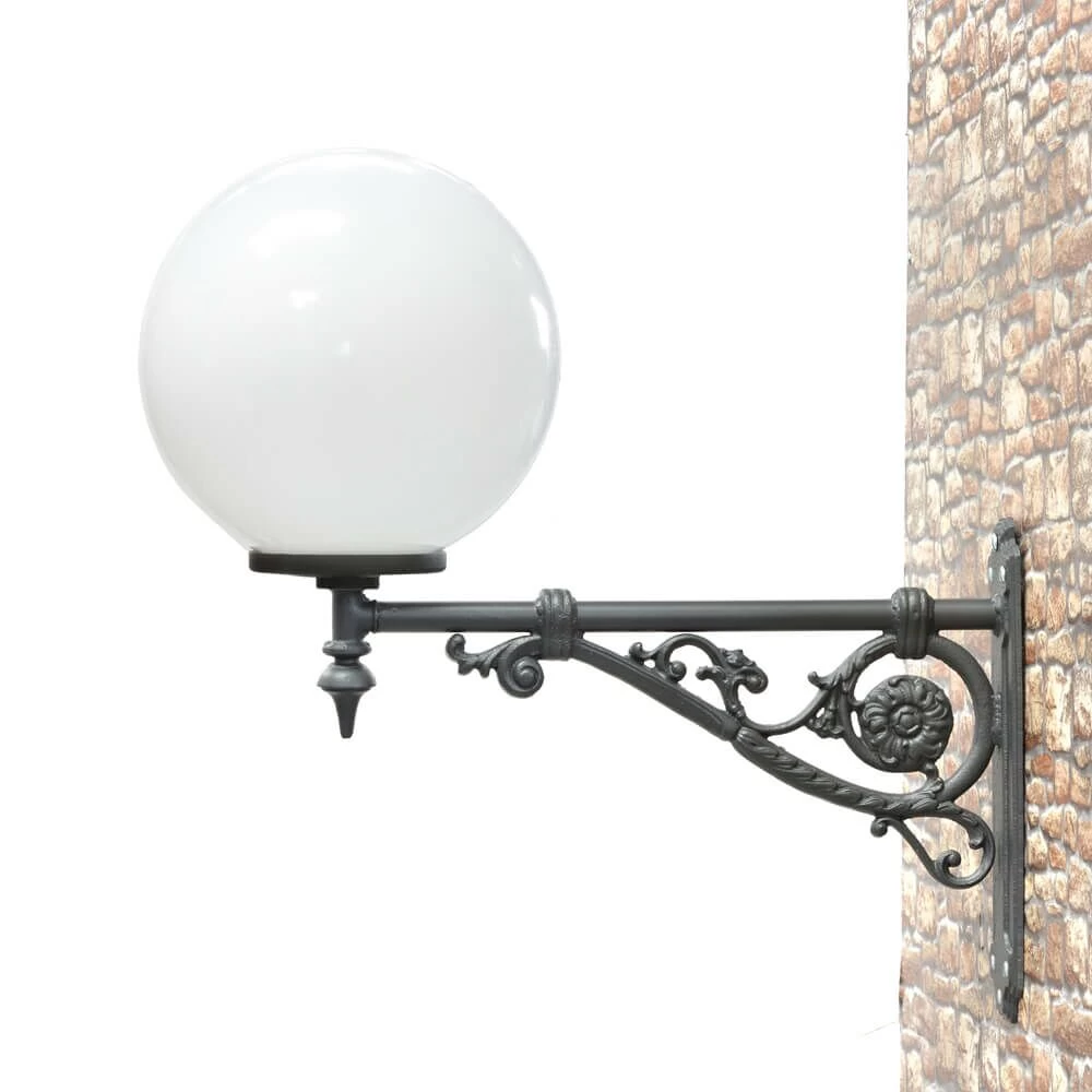 Diese Nostalgie Außen Wandleuchte aus Gusseisen wird nach einer historischen Original Vorlage gefertigt und ist vielfältig für Haus und Hof einsetzbar. Auch in Städten oder an Museen wird Sie Ihre Wirkung nicht verfehlen. Dank einer neuartigen Gusstechnik auf Aluminium-Basis wird Korrosion und Rost verhindert, so dass die Laterne auch den widrigsten Witterungsbedingungen standhalten kann. Alle Gusseisenteile der Lampe sind pulverbeschichtet und können in vielen Farben bestellt werden. Standardmäßig bieten wir die Wandleuchte in schwarz (RAL 9005), grün (RAL 7016) und anthrazit (RAL 6005) an. Auf Anfrage sind alle Farben der RAL Farbpalette möglich (gegen Aufpreis).