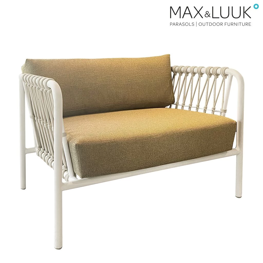 Für den Gartensessel des Herstellers Max & Luuk wird das verwendete Aluminium bei einem elektrostatischen Lackierverfahren pulverbeschichtet, sodass die Basis der Gartenmöbel ihre Farbe erhält. Um die Haltbarkeit der Beschichtung zu erhöhen, wird das Material während der Verarbeitung auf 180°C erhitzt. Gartenmöbel aus Aluminium sind besonders leicht zu reinigen, wetterfest und robust. Wir empfehlen die Nutzung von warmen Wasser und einem feuchten Tuch. Auch ein Universalreiniger kann eingesetzt werden. Säurehaltige Produkte können das Material schädigen und die Wetterbeständigkeit beeinflussen.