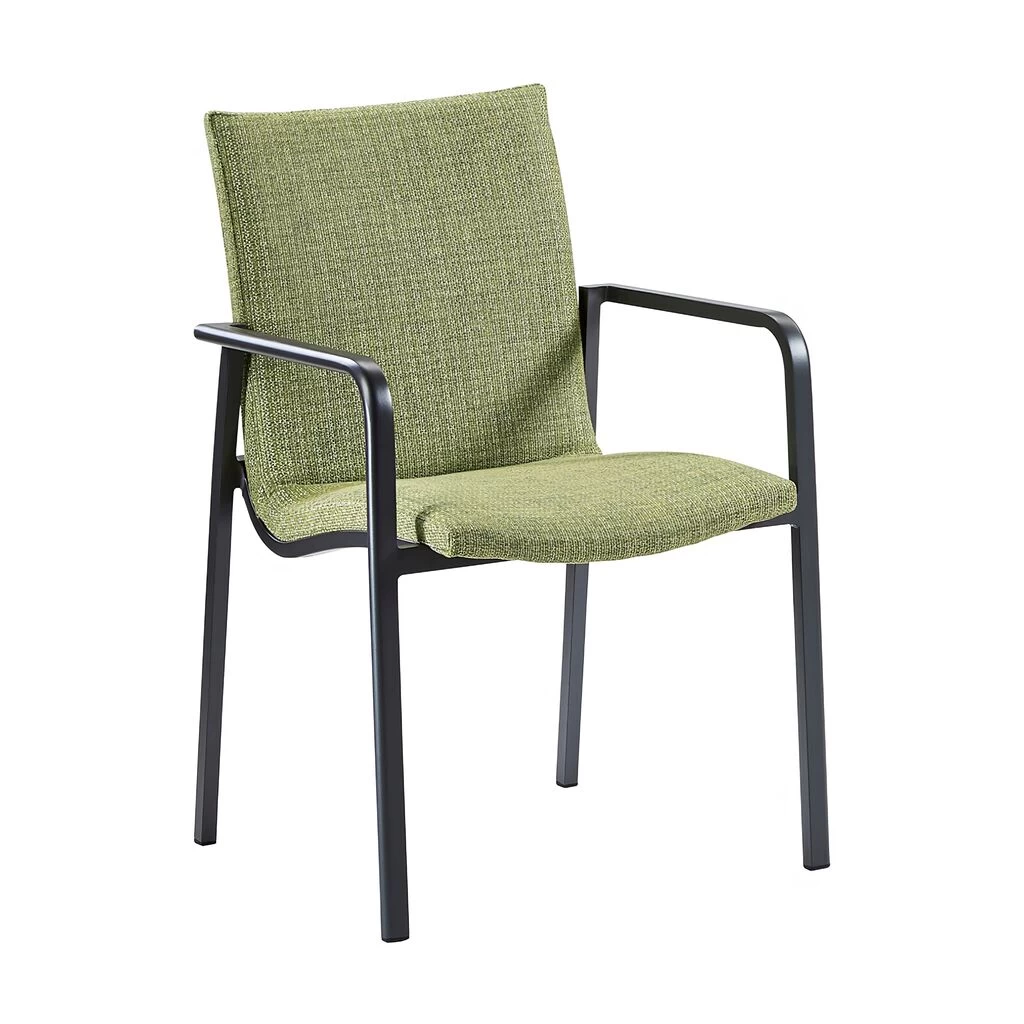 Unsere hochwertigen Gartenmöbel zeichnen sich durch eine hohe Robustheit gegenüber Witterung aus. Egal ob auf dem Balkon, auf der Terrasse oder im Garten platziert, besticht der Gartenstuhl durch ein elegantes Design. Der Outdoor-Stuhl hat ein Aluminiumgestell. Die ergonomische Sitzfläche wird aus einem Outdoor-Stoff gefertigt, welcher sich durch eine hohe Strapazierfähigkeit und Witterungsbeständigkeit auszeichnet. Als Polsertung wird ein wasseraufnahmeresistenter Fast-Dry-Foam verwendet. Die Rückenlehne ist 44 cm hoch. Der Stuhl wird montiert geliefert.