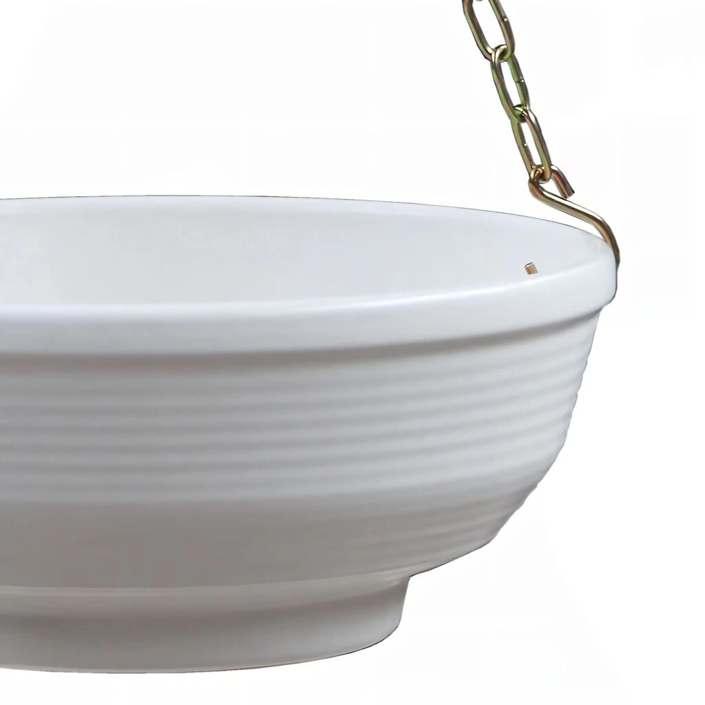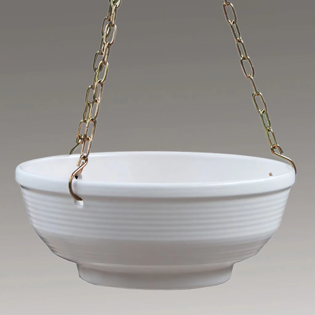 Diese runde Pflanzschale zum hängen überzeugt durch erstklassige Verarbeitung und eine lange Lebensdauer. Die weiße Blumenschale wird inklusive Kette geliefert und ist in zwei Größen erhältlich. Natürliche Rohstoffe, gebranntes und hochwertiges heimisches Steinzeug kombiniert mit traditioneller Handarbeit aus Deutschland: Diese modernen Pflanzgefäße sind nahezu unverwüstlich und können mindestens 80 Jahre lang im Freien verwendet werden. Alle Blumentöpfe aus dieser Kollektion verfügen standardmäßig über ein Ablaufloch im Boden – so entsteht garantiert keine Staunässe. Pflanztöpfe und Blumenkübel aus bestem Steingut in Top-Qualität können Sie jetzt einfach und sicher online ab Werk kaufen. Ab sofort sind die Produkte in vielen Varianten & Farbvariationen lieferbar. Ob moderne Gartenmöbel oder klassische Gartendekoration wie z.B. ein Kaskadenbrunnen, eine Sonnenuhr oder ein stilvolles Klangspiel – diese zeitlosen Designs fügen sich hervorragend in Ihre Gartengestaltung ein. Auf Wunsch liefern wir auch individuelle Modelle, Formen & Sondergrößen nach Zeichnung. Kontaktieren Sie uns bei weiteren Wünschen.