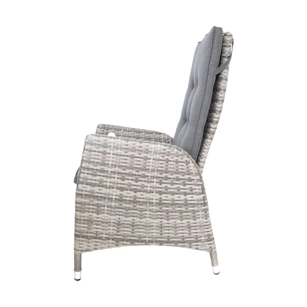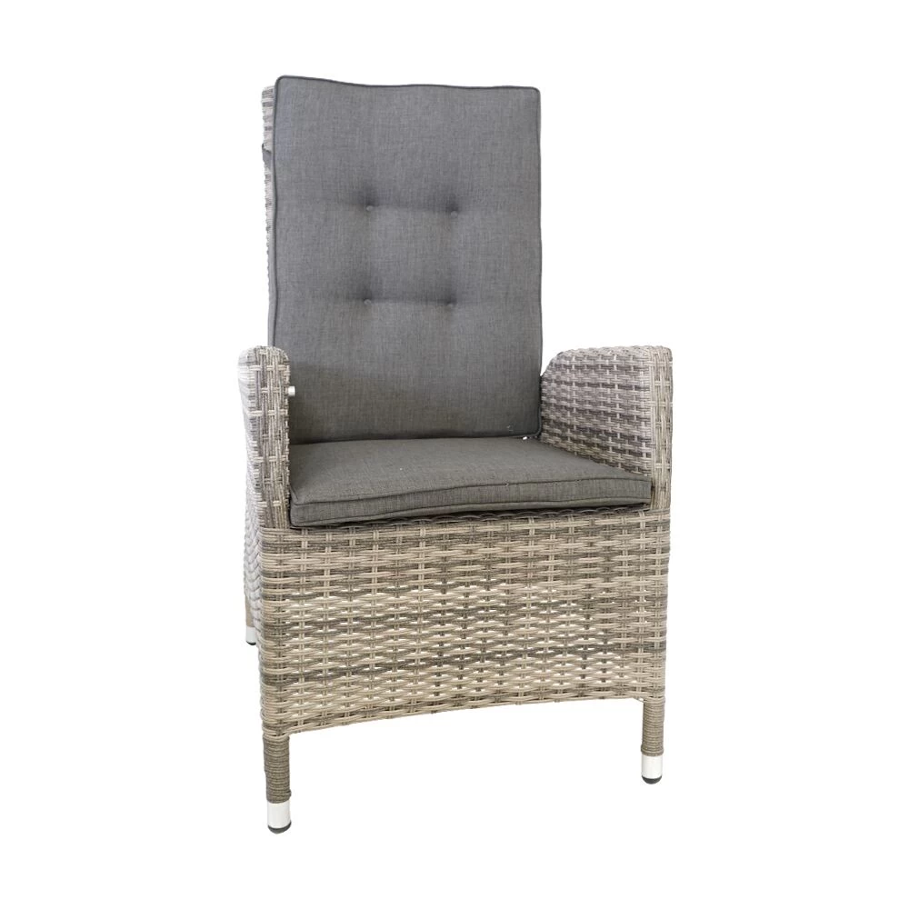 Dieser robuste Gartenstuhl wird unter ständiger Qualitätskontrolle aus Aluminium gefertigt. Das Polyrattan besteht aus 8x2mm halbrunden, grau-braunen Doppelsträngen. Als Auflagen werden schmutz- und wasserabweisende Spun-Polyester-Bezüge (220gr/qm) verwendet. Die Outdoor-Möbel sind beständig gegenüber Witterung und können ganzjährig im Außenbereich eingesetzt werden. Zur Reinigung sind Wasser und ein Schwamm ausreichend. Von säurehaltigen Reinigungsmittel wird abgeraten. Diese können die Oberfläche schädigen und zu einem Verlust der Wetterbeständigkeit führen.