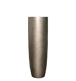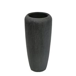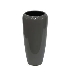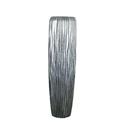 Indoor Pflanzvase Mit Einsatz Aus Polystone – Silber – Rund – Senkrechte Rillenmuster – Adanna