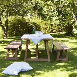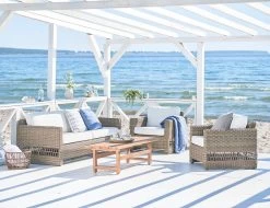 Holzfarbene 3-Sitzer Gartenbank Mit Rückenlehne Und Kissen – Bank Caya
