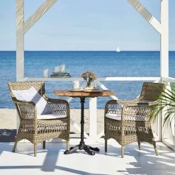 Outdoor Stapelstuhl Mit Armlehnen In Weiß Und Hellbraun – Gartensessel Mette