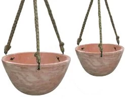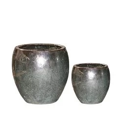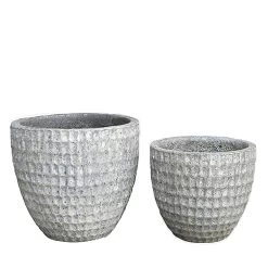 2er Set Pflanzgefäße Aus Polystone – Rund – Grau Mit Holzstruktur-Optik – Mit Einsatz – Yosan