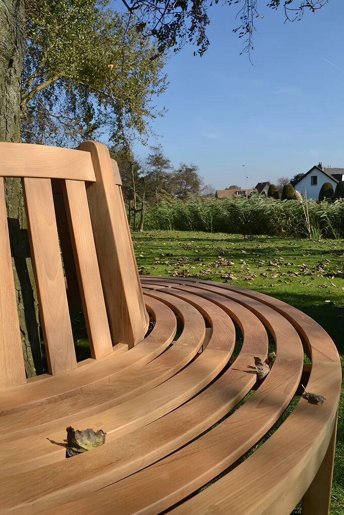Die runde Baum-Bank FINLEY ist so konstruiert, dass sie 360° den Baum umschließt und Sie sich somit immer den besten Platz im Schatten sichern können. Alternativ kann die halbe Gartenbank auch an eine Wand oder einen Zaun gestellt werden. Hergestellt aus hochwertigem Teakholz ist die Gartenbank sehr robust und langlebig.