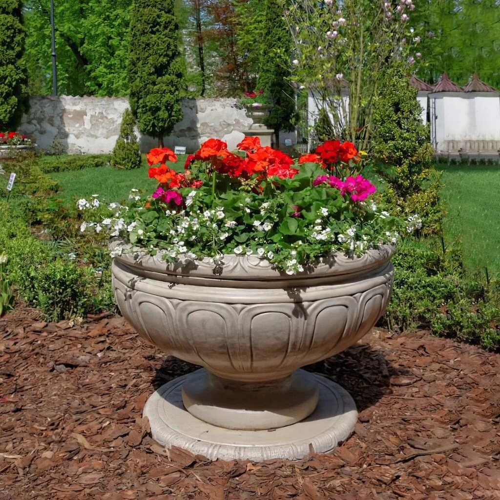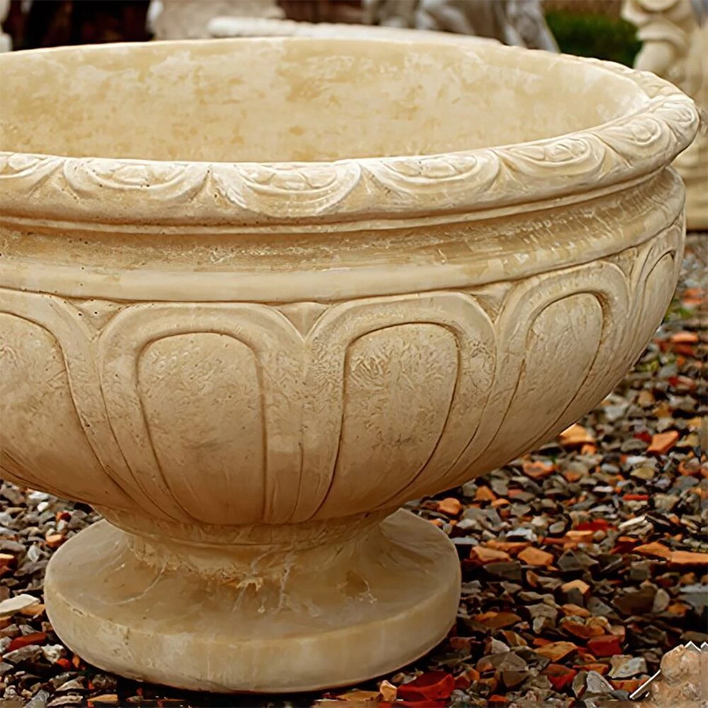 Rund, schlicht und trotzdem ein stilvoller Hingucker im Garten, im Park oder auf der Terrasse: Dieses Pflanzgefäß wird aus wetterfestem Steinguss inklusive Loch für den Wasserabfluss hergestellt und ist in verschiedenen Farben für Ihre individuelle Gartengestaltung erhältlich.