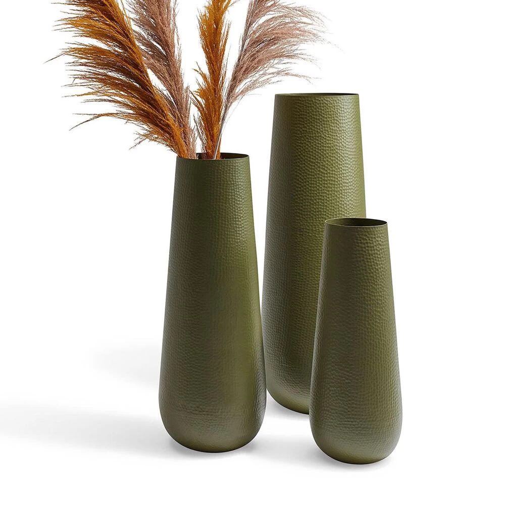 Modern mit einer Hammerschlag-Design Oberfläche ist diese Gartenvase ein wetterfestes Dekoobjekt aus Aluminium.