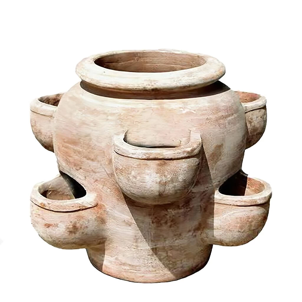 Der schöne Erdbeerkübel MARINA wird aus Terrakotta handgefertigt und besticht mit einer bräunlichen Antik Optik und seiner außergewöhnlichen Konstruktion. Er bietet Platz für viele Erdbeerpflanzen, die alle aus einem Gefäß wachsen können und trotzdem genug Platz für sich haben. Das stilvolle Erdbeerpflanzgefäß wird garantiert ein Blickfang in Ihrem Garten oder auf Ihrer Terrasse.