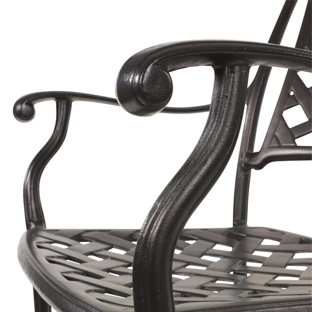 Dieser robuste Gartenstuhl wird unter ständiger Qualitätskontrolle aus Aluminium gefertigt. Das Outdoor-Möbelstück ist beständig gegenüber Witterung und kann ganzjährig im Außenbereich eingesetzt werden. Zur Reinigung sind Wasser und ein Schwamm ausreichend. Von säurehaltigen Reinigungsmittel wird abgeraten. Diese können die Oberfläche schädigen und zu einem Verlust der Wetterbeständigkeit führen.
