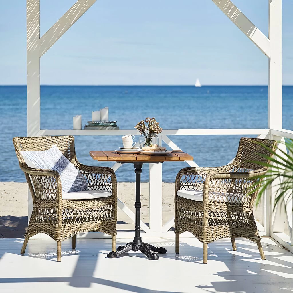 Mit einer Leidenschaft für Rattan, Handwerkskunst und Nachhaltigkeit überzeugt der Hersteller international. Möbel zu fertigen, die jahrzehntelange Begleiter werden und deren Design Ästhetik und Nutzen vereint, ist das Ziel des Traditionsunternehmens. Die Möbelstücke werden unter Berücksichtigung der Umwelt und des menschlichen Wohlbefindens in Indonesien hergestellt und sind dementsprechend zertifiziert. Viele Designs wurden von namenhaften Künstlern aufgegriffen und werden durch die Fertigung aus wetterfesten Materialien neu interpretiert. Handgebogene Aluminiumrahmen werden mit der Kunstfaser Art Fibre in Handarbeit umflochten. Alu Rattan ist pulverbeschichtetes Aluminium, welches stoß- und kratzfest ist. Die Kunstfaser Art Fibre ist eine Faser aus gefärbten und strapazierfähigen Polyethylen. Da sie temperatur- und UV-beständig ist, hält die Kunstfaser jedem Klima stand. Die Struktur dieses Polyrattans ist auf der einen Seite sehr stark und kann über Jahre hinweg ihre Form behalten, auf der anderen Seite ist sie sehr flexibel und bietet einen angenehmen Sitzkomfort. Alu Rattan und Art Fibre sind beide sehr pflegeleicht und lassen sich mit Wasser und einer milden Seife reinigen.