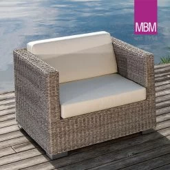 Die Gartenmöbel Serie Bellini wird aus hochwertigem Aluminium und einem braunem Kunststoffgeflecht (Mirotex), welches eigens von MBM entwickelt wurde, gefertigt. In Optik und Haptik steht das Geflecht echtem Rattan in Nichts nach, ist aber wesentlich pflegeleichter und langlebiger. Hier können Sie sich wirklich mit ruhigem Gewissen zurück lehnen und den Sommer genießen. Die Reinigung erfolgt mit handelsüblichen Reinigungsmitteln.