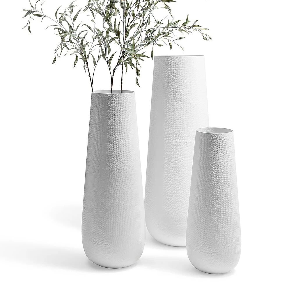 Die stilvolle Gartenvase ist aus Aluminium im handwerklichen Hammerschlag-Design hergestellt und wetterfest.