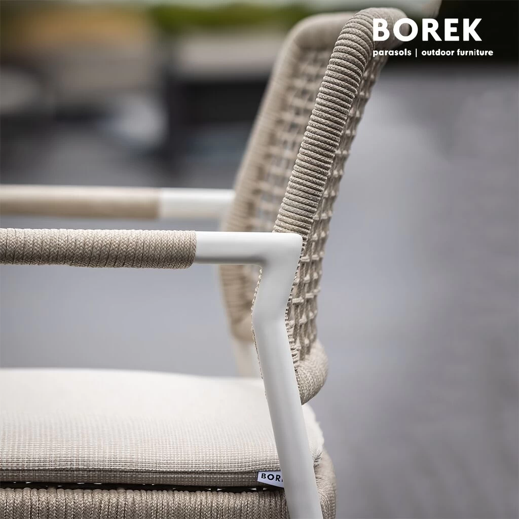 Die Gartenmöbel des Herstellers Borek zeichnen sich durch eine dauerhafte Stabilität und ein modernes Design aus. Eine hochwertige Aluminiumlegierung, die bei 180 Grad pulverbeschichtet wurde, bildet das Gestell der Möbel. Der Gartensessel ist frost- und hitzbeständig sowie pflegeleicht. Neben Gartenstühlen bietet der Hersteller auch Loungemöbel, Gartenliegen und Sonnenschirme an, die Sie ebenfalls in unserem Shop online bestellen können.
