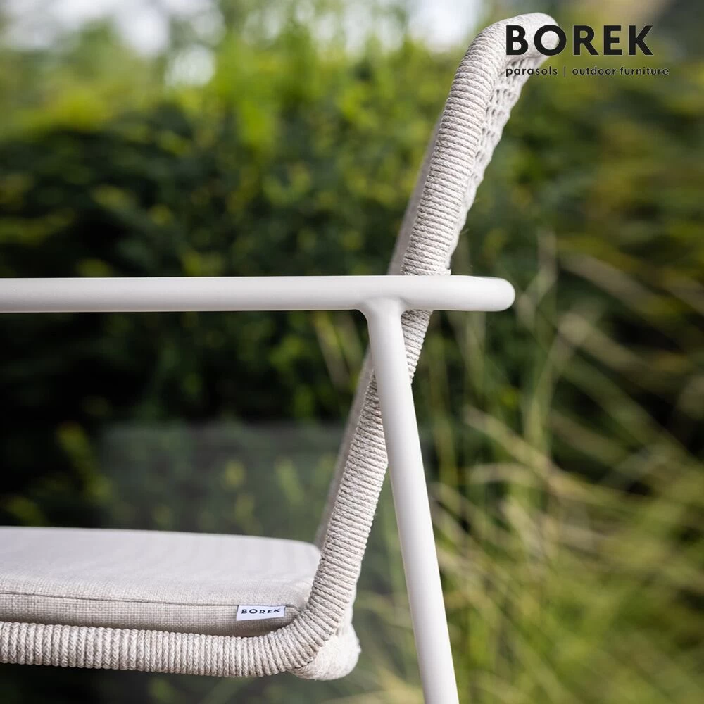 Die Gartenmöbel des Herstellers Borek zeichnen sich durch eine dauerhafte Stabilität und ein modernes Design aus. Eine hochwertige Aluminiumlegierung, die bei 180 Grad pulverbeschichtet wurde, bildet das Gestell der Möbel. Der Gartensessel ist frost- und hitzbeständig sowie pflegeleicht. Neben Gartenstühlen bietet der Hersteller auch Loungemöbel, Gartenliegen und Sonnenschirme an, die Sie ebenfalls in unserem Shop online bestellen können. Das Ardenza-Seil kann mit dem Borek Fabric Cleaner gerinigt und mit dem Borek Fabric Protector geschützt werden.
