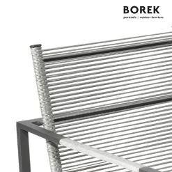 Die Gartenmöbel des Herstellers Borek zeichnen sich durch eine dauerhafte Stabilität und ein modernes Design aus. Eine hochwertige Aluminiumlegierung, die bei 180 Grad pulverbeschichtet wurde, bildet zumeist das Gestell der Möbel. Hinzu kommen hochwertige Materialien für die Bespannung. Der Gartenstuhl ist frost- und hitzbeständig sowie pflegeleicht. Neben Gartenstühlen bietet der Hersteller auch Loungemöbel, Gartenliegen und Sonnenschirme, die Sie ebenfalls in unserem Shop online bestellen können. Das Ardenza-Seil kann mit dem Borek Fabric Cleaner gerinigt und mit dem Borek Fabric Protector geschützt werden.